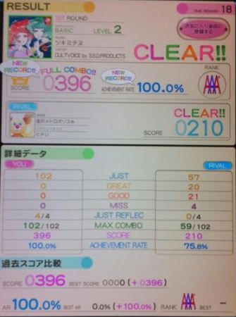 リフレクでは、低レベルですが2曲100%出しました。