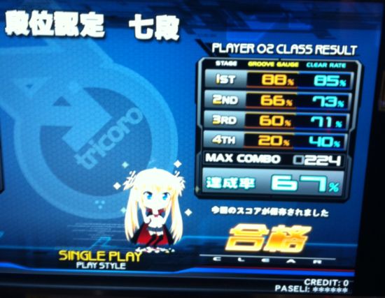 beatmaniaⅡDX tricoro SP七段合格しました!